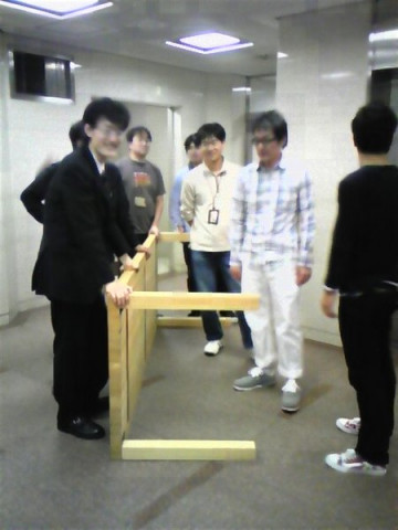 机がおもすぎてエレベーターホールで休むチーム。