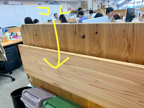 この、立ち話ミーティング用の、飛び出すテーブルです。
