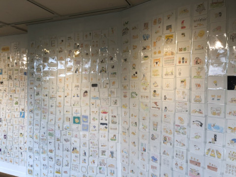 搬入中! 明日から京都と東京TOBICHIではじまる、 雲がうまれるさんの展覧会。 ぜっさん搬入中です。 おなじみの、壁の原画は、今回も1000枚! 上から下まで、埋め尽くされています。 壮観です。 雲さんも、感動しています。 (話はそれますが、 「雲がうまれる」さんのことを、 「雲さん」と呼ぶのが正解なのか、 「雲がさん」と呼ぶのが正解なのか、どっちなんでしょうか。 わたしは「雲さん」派です) 写真2枚目の「たてばんこ」という、新しい作品のシリーズも、壁に飾る予定です。 細かい立体感が、いちいちかわいいんですよ。 え!? そのお面、立体なの? みたいな感じです。 (見に来ていただくと、わかってもらえると思います) 細かいところをじっくりご覧いただけますし、お持ち帰りもできます! 1階の入り口では、あの「かみさまのところ」のフォトスポットをご用意していますよ。 しば好きのみなさん、しばじゃなくて、犬猫好きなみなさん、ぜひぜひお立ち寄りくださいー! 1階のグッズスペースも、雲さんがたくさんグッズを持ってきてくださったので、おおにぎわいです。 おたのしみにぃ! 2019/10/24 15:44 |