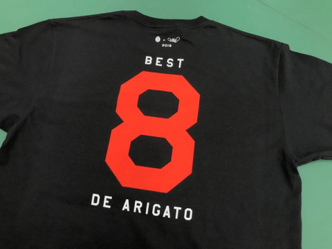 「BEST 8 DE ARIGATO」 にわかラグビーファン観戦Tシャツ、大急ぎで作った「祝ベスト8」デザインのサンプルが届きました! これまで販売してきた 「RUGBY NIWAKA DE GOMEN」 というメッセージのプリントの上に赤い文字で 「BEST 8 DE ARIGATO」 という感謝とお祝いの言葉を載せました。 うしろ姿には「8」をドーーン! ラグビー選手が着るジャージの背番号8番をイメージしたデザインです。 めちゃくちゃかっこいいです。 こちらのページで11月1日午前11時から11月5日午前11時まで受注販売をおこないます。 受注販売ですので、自分のサイズが売り切れることもありません。 どうぞあわてず、この機会をぜひお見逃しなく。 冬からはじまるトップリーグ観戦に向けてワンサイズ大きいものを上に着てもいいし、代表選手を称えるためにTシャツを掲げてもいいですし。 2019年、にわかラグビーファンになった自分を記念するグッズになりそうです。 2019/10/30 19:24 |