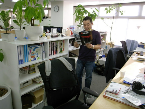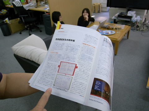 ミスタービジネスマン! ハロー! 弊社でビジネス雑誌を読んでいる人を見かけるのはちょっとめずらしいのでついおかしな話しかけをしてしまいました。 べっかむさんがただいま読んでいるのは発売されたばかりの 『日経ビジネス』。 なんとこの中の 「売れ筋探偵団」というコーナーでほぼ日手帳が取り上げられているのです。 ふむふむ。 従来、ビジネスマンの手帳と言えば、スーツの上着に入るサイズが主流だったのですが、最近はもっと大きなモノが売れてきているですって。 ほぼ日手帳のことがしっかりと掲載されているので会社やご自宅で購読されている方はぜひチェックしてくださいね。 それでは、みなさま、ハバナイスデー! 2009/10/13 20:47 |