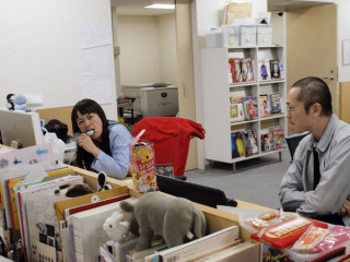 自分だけの蒸気 「モギさん、いいっすねー、 昼からガリガリ君っすか」 あれ? モギちゃんの顔の横から煙が出てるような気が‥‥ 「これね、いいでしょ。 自分専用の加湿器、買ったの」 ものすごくダイレクトな加湿だね‥‥ 「フロアが広いから、 このくらい直射しないと、 効き目がないのよ!」 一同: 「ずるい。その湿気、みんなにも分けて〜」 みんなも買えばいいと思った‥‥けど、この、加湿を得意げに受けてアイスをかじる姿は、いい、とも思った‥‥ 2009/10/14 13:41 |