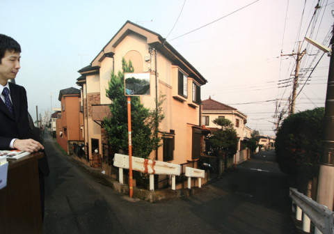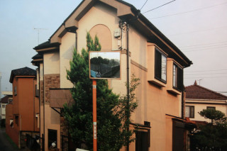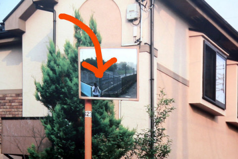あれは横尾さんです 久保さん 「ああ、あれは Y字路を撮影する 横尾さんが ミラーに写っているんです。 ご本人は『へぇえ。写ってるなんて知らなかった。 これはポートレートだね』 と、おっしゃっていました」 へえー。 ミラーに写った横尾さん、かっこいいです。 どんどん引いて撮影していくと‥‥あの‥‥3枚目の写真で、はからずも、久保さんも、写真の中の人みたいになってしまいました。 クリックして拡大していただくと、その縮尺の味わいがおたのしみいただけると思います。 2009/10/20 16:10 |