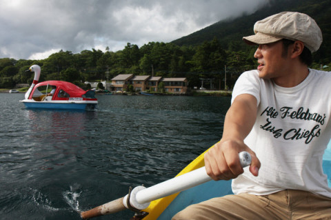 黄昏れるスワンを追え! 今日から、写真が華厳の滝に変わった 「黄昏」ですが、昨日までは、中禅寺湖でスワンボートに乗っておりました。 〜〜撮影当時の回想シーン〜ぽわわん〜〜 「永田さん、あのスワンな二人、 どうやっておいかけましょうか? 足こぎだから早いですよねぇ?」 「まかしとけ。 (ボートの係の人に) すいません、手こぎを一つ。」 「大丈夫ですか? 永田さん。 ボートだよ。漕げんの? 転覆は嫌だよ。」 ざぶぶっ!(ボートが出る音) ぎい〜こ。ぎ〜こ。 ざぶぶぶっ! ざぶぶぶっー! ざぶぶぶっ! 「う、うまい、、。」 「学生のころ 貸しボート屋で ちょっとバイトをね。」 「かっきーー!(かっこいい)」 その後は、 「右へ行け」だの 「左へ曲がれ」だの、 「もっとスピードを!」と言えばその通りに小舟を操る 「黄昏」裏話、またお伝えできる機会がありましたら、お会いしましょう。 ごきげんよう〜 2009/10/21 19:30 |