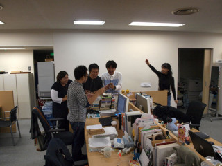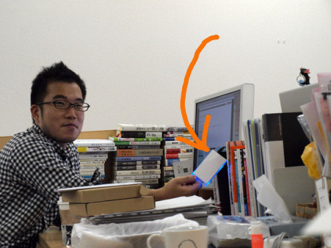 ピーッピッ さっきから横の席でピピッ、ピーと宇宙的電子音が鳴り響いています。 あまりのアピールボリュームにたまりかね、原稿を書いている手を止めて左を向けば、 前を向けば、みんなも首を伸ばして気にしています。 えー、では席が近所ですので代表して訊きましょう。 なになに、それは携帯電話をかざすとピピッという音と共にURLがあっという間にダウンロードできるものである、とな? わー、寄ってきた。 携帯電話持って、みんなが寄ってきました。 「ま、まだ設定ができてないんだってば」 2009/10/22 16:13 |