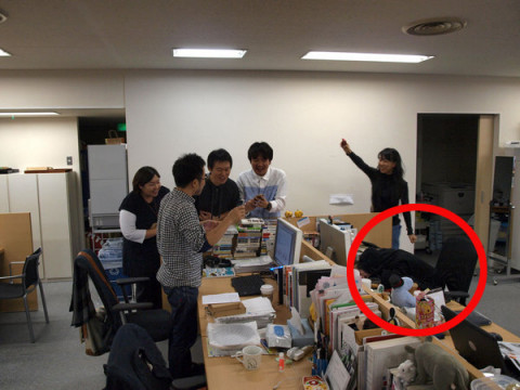 その騒ぎのなか。 さて、その宇宙部の騒ぎの写真の こちらの投稿の3枚目をごらんください。 この赤い丸のなかの黒い物体は、ヒューマン・ビーイングです。 別の角度からみた写真がなぜか私のカメラに保存されていたので、ごらんいただきましょう。 布をかぶって寝る自分です。 そして、こちらの投稿のまんなかで、ボーっと顔をあげた人は、その前まで、このように、寝ていたわけです。 かたや騒ぎで起きて、かたや寝続ける。 しかし、どちらにしても寝ていたのには変わりなし。 ヒューマン・ダストです。 2009/10/22 16:37 |