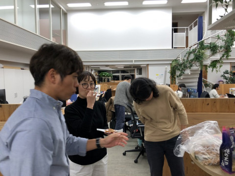 かりんとう さっきから、元カロリーメイツの食べるの大好き 横を通るたびにちょっとつまんで、そのたびに誰かにおいしさを伝えたくなるようで、 「これおいしいよ」 と通りがかりのみんなにすすめています。 10分前も「おいしいよ、これ」と言っていたと思ったら、気づくといまもまた食べていて、新しく別の人にすすめてました。 「ただかりんとうがおいしいとみんなが淡々と食べているだけ」 の投稿で、なんの製作中でもありませんが、このかりんとう、確かにおいしいです。 くださったかた、ありがとうございます。 いまの弊社は、おやつテーブルにおいしいかりんとうがある会社です。 2019/12/05 20:05 |