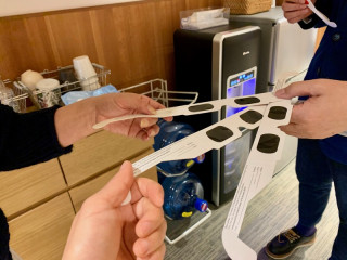 「いる?」 打ち合わせが終わったあと、 「いる?」 といってきました。 「おれは1本でいいんだ」 なんでしょうそれは。 「もうすぐ日食だからさ」 いただきものですか? 「買ったんだよ」 備えて‥‥ですか? 「備えてだよ」 日食を見るメガネ、なぜ君たちは買わないのか、そういうところがだな、と聞きながら、私たちは 「なんなら友達にも」といってたくさんのメガネをもらいました。 みなさん、次の日食は2019年12月26日です。 そなえよ、つねに。 2019/12/11 15:46 |