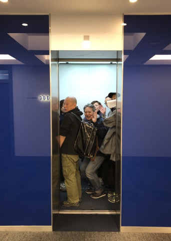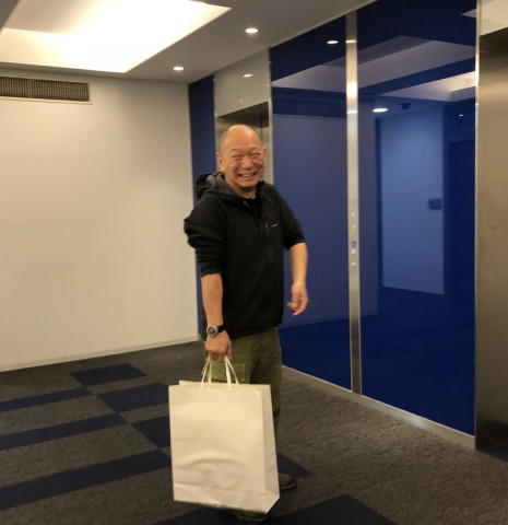 メリー・インディペンデントデー! 毎週金曜日は、自分の時間を自由に使って自分の頭で考える日の、「ほぼ日」の 「インディペンデントデー」です。 今日は、あれもしよう、これもしなきゃと、ちょっと早めに出社したら、何やら、たのしそうな面々が、すでに外に出る格好で、会社の入り口に集合。 聞けば、総務の という、ベテラン感あふれる明るく陽気なお祭り気分の御一行様。 思わず、メリー・インディペンデントデー! と記念写真を撮りました。 にぎやかに、ぎゅうぎゅうにエレベーターに押し込まれて降りていったのを見送って、席に戻って、仕事をしていたら、10分後くらいに、 あれ!さっき見送ったのにと思って、訊いたら、 いきなり、ハプニング・スタートに。 どういうインディペンデントデーになりますことやら。 たのしい一日を! 2019/12/13 12:03 |