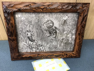 屋久島からの贈りもの! ほぼ日の学校チームのワクシマです。 先週で最終回を迎えた「ほぼ日の学校」に屋久島から、すごいものが届きました。 受講生のYさんが「感謝を込めて」と作品を額装して送ってくださったのです。 額は、屋久島の工芸屋さんが屋久杉でつくったものなんだとか。 絵にも額にも生命感があふれていてすごい迫力です。 (映り込みを避けたら、まっすぐ 撮れませんでした、すみません!) もともと生きものや虫や森が好きだったけれど、ときどき趣味として絵を描くくらいでひとり静かにたのしんでいた、というYさん。 ほぼ日の学校に参加して、おもしろい!もっと知りたい!という気持ちがどんどん強くなって、少しずつ動き出したらいろんなことが繋がって、縁があってこの12月は屋久島に行ってフィールドワークをすることに。 そのため「ほぼ日の学校」の最終回だけ涙をのんで欠席になってしまったのですが、あふれる気持ちを絵に込めて送ってくださったのでした。 もともとはクマバチだけ描いていた絵に授業でハナバチの話を聞き、花の話を聞き、どんどんインスピレーションを得て描き足していったのだそうです。 ほぼ日の学校の講師の方々は皆さん、教室のエネルギーがすごい、と話されるのですが、こういう、授業をとことんおもしろがって、目一杯たのしんでくださる受講生のかたが集まってくださっていることが、ほぼ日の学校の財産です。 次の講座、「橋本治をリシャッフルする」は12月24日(火)午前11時まで募集中です。 気になる方は、ぜひ、ご応募くださいね。 橋本治さんと一緒に古典をごくごくのんで、おもしろい世界がぐんぐん広がる、自分の知っていた世界が変わっていく、そんな体験を、たくさんの皆さんとご一緒できればと思っています。 2019/12/16 14:31 |