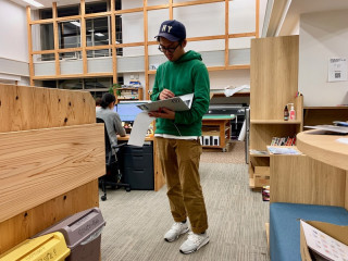 緑のひらもとくん (さっきのつづき) 暗いといえば、あの人はどうかな。 いつもイヤホンをしているけど音楽は聴いてない、ひらもとくんです。 「暗いというより、あれは日焼けじゃないですか」 「この時期に日焼けって、どこに行ってきたんだろう」 NYかな。 ひらもとくん、日焼けはどこでしてきたの? 「日焼けしてませんよ」 ちょっと、CACUMAのバッグ持ってみて。 「これ、やっぱり軽くて持ちやすいッスよね」 「あ、なんか明るくなった」 「クリスマスみたいや」 以上で、私の夕方の息抜きは終わりました。 ひきつづき、原稿がんばります。 2019/12/18 18:03 |