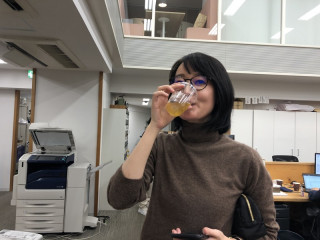 おいしかった! お茶チームです。 オフィスでもよくお茶をいれてます。 この時期おすすめなのは、 焙じ茶、玄米茶です。 もうひとりの担当は 今日はセーターがはじけてます。 (こういうのどこで買うんだろう) どこを見ればいいのかわからない写真が撮れました。 それはともかく。 焙じ茶を飲んだ方にびっくりされるのが、香りの良さ。 色が淡いのに、いれた瞬間から香ばしいかおりが立ち込めます。 ちょうど何かを撮影中だったカメラマンの大江さんにもお出ししたところ、 「あ、香りがいいね」と言ってくださいました。 さらに。 以前買って飲んでくださった方からこんな感想メールをいただいたことがありました。 ====== 焙じ深茶を購入させていただきました。 一般的なほうじ茶の様に色が茶色くなりませんが、香りがとても良いと思います。 最近では水出し茶にして飲んでおります。 これが、またとても美味しいです! (私はHARIOのボトルで作ってます) ====== 焙じ茶の水出し‥‥! それは試してみなくては。 HARIOのボトル、口付近にフィルターがついていて茶殻がコップに入らなくて便利ですよね。 お茶チームでも一つ所有しているので、久々に使ってみました。 ボトルに水と茶葉をいれ、冷蔵庫で冷やします。 (時間は適当です。 私は2時間くらい置きました) すっきりとしていて、お湯でいれたときよりほんのり甘みがある感じ。 かなりいけます。 冬でも冷たいお茶が飲みたい、というときは、ぜひぜひ試してみてください〜。 2019/12/23 17:54 |