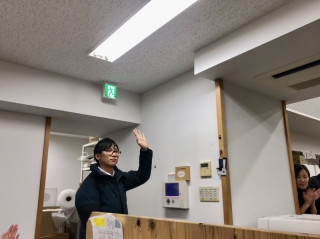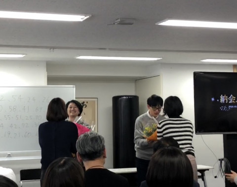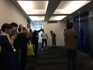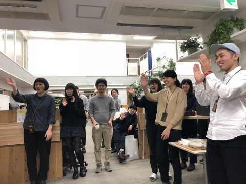 ふたりとお別れ 今日の「納会」は、ほぼ日を卒業する二人、 「生活のたのしみ展」のスタッフとして関わってくださったのをきっかけに、1年4ヶ月の間、主にweeksdaysを中心にたくさんのことをサポートしてくださいました。 わからないことがあって聞きに行くと、忙しいときでも、いつもにこにこ答えてくださる、素敵な人でした。 最後も、謙虚にそーっと帰ろうとしていたので、いやいや、それはだめです、とみんなでお見送りを。 予行演習をしていたせいか、 「なんかこの光景、前に見たな」と、つぶやく声が多々聞こえる、笑いたっぷりのお別れになりました。 お二人とも、本当にありがとうございました。 &おつかれさまでした! また遊びに来てくださいね。 さて、すでに納会は行われましたが、ほぼ日の仕事納めは明日です。 あと1日、私たちもがんばらねば。 2019/12/25 21:12 |