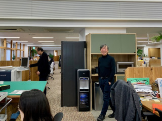コーヒータイム 黒コーデなおふたり 「いま、コーヒーを淹れてさしあげたからですよ」 え〜、いいなぁ、ジャブさんのコーヒー おいしいから。 「いただきます(紙コップ)」 「ぼくはマイマグカップ。 スミソニアン博物館のだよ」 「‥‥‥‥‥‥」 どうしたんですか。 「たまたま、いまマグカップが手もとになかっただけでさ‥‥、ぼくのこの紙カップと、すてきなハヤノさんのマグカップの落差を、スガノさんがどのように描写するのかが気になって」 そのまま、書きます。 ほっとひといきなコーヒータイムでした。 2020/01/15 15:19 |