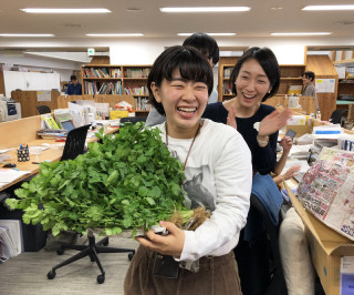 またね、エイミー その人がただそこにいるだけで場がなごむ、そんな人はそれほど多くはいませんが、たまにいると、わぁこういう人をみんなで大事にしなくちゃなぁ、と思います。 そういう存在だった総務の 頼みごとを確実にきっちりやってくれるし、気遣いもできるから、みんないろんな面で助けられてました。 去年はマジカル気仙沼ツアーの準備もたくさんがんばってたなあ。 その人柄にみんなが癒され、読者のかたから、大好物の パクチーをいただいたこともありました。 あ、ほぼ日TOPのイラストになってたこともあったな。 提出書類が遅れて迷惑をかけても、大丈夫ですよ! とニコニコして言ってくれると、ああ悪かったな、次から気をつけなきゃなあ、って思ったりします。 北風と太陽の、太陽みたいな人だったのかな。 エイミーの存在がこのオフィスをふわっとまとめてくれていたように思います。 と、いうことで、ありがとうエイミー。 いや、こんなにつらつら書いたけど、本音を言うと、さみしい! 今の また会いにきてね! 2020/01/31 19:19 |