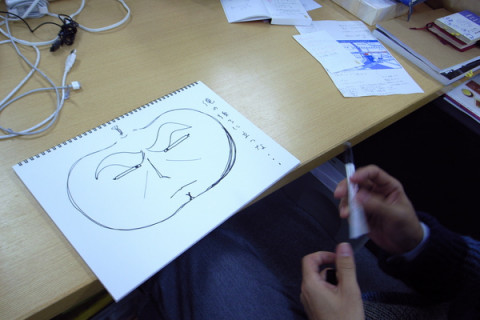 おっくんのカボチャ 「モギがカボチャをくり抜く60分 6」では、ただいま、くり抜くカボチャの顔を募集しています。 こちらはカボチャの顔を考える 「うーーーん、どんな顔にしようかな。」 「、、。」 「あ!」 と言いながら、さらさらとペンを進めます。 「『ゴルゴ13』のデュークカボチャ。」 「好きだねぇ!」 そして、カメラで撮影して、メールで投稿で終了です。 明日の11時まで受け付けてますので、どうぞお送りくださいねー 携帯電話からは、QRコードからどうぞ。 2009/10/29 16:01 |