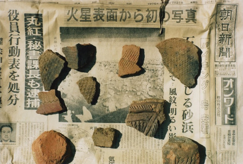 23日(日)まで開催中です。 以前『俳優の言葉。』という連載で、 山?努さんを撮影してくださったり、パンダのかわいらしさについて、小澤千一朗さんと 全開トークをしてくださったりなど、いろいろお世話になっている写真家の田附勝さんが、あざみ野で写真展を開催しています。 23日(日)まで、会場は 横浜市民ギャラリーあざみ野です。 遅ればせながら、行ってきました。 一言、かっこよかったです。 展覧会の公式サイトにある説明文を引用します。 「縄文土器のかけらを、 箱のなかで中敷きや梱包として 使用されていた新聞とともに、 保管状態そのままに撮影したものです」 これが、何ていったらいいんでしょう、写真の前に立つと 「時間の迫力」みたいな何かを感じて、はぁ〜っと見入ってしまいます。 写真を見ているのか、写真に見られているのか‥‥というか。 縄文土器のかけらを撮っただけとも、ふるい新聞紙を撮っただけとも、たぶん、少しちがう時間の感覚がある。 こういう表現がいいかわからないけど、 「かっこいい」と思いました。 いろいろ説明しようとしてもかえって伝わりにくいかと思うので、ぜひ直に見てほしいです。 なお、同じテーマの写真集もあって、こちらは以前インタビューさせていただいた 造本家の町口覚さんが本の設計をされているとのことです。 発売は3月以降ですが 出版社のページで予約を受付中です。 まだ、現物を手にしてないのですが、かなり期待してます。 ◎KAKERA きこえてこなかった、私たちの声展◎ 会期:2020年2月23日(日)まで時間:10:00?18:00 料金:入場無料横浜市民ギャラリーあざみ野?展示室1 ◎写真上から*あけましておめでとう 技術の日産 1964年(昭和39年)1月1日 朝日新聞 (撮影:2018年11月26日 奈良県奈良市) *火星表面から初の写真 1976年(昭和51年)7月21日 朝日新聞 (撮影:2016年3月15日 東京都杉並区) *今も耐えている 沖繩 1969年(昭和44年)11月16日 読売新聞 (撮影:2016年3月15日 東京都杉並区) *おヒゲの田附さん。写真集を手に。 2020/02/21 21:36 |
