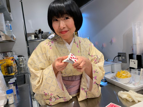 午前中はまだお客さんも多くなかったのでママに手品をみせてもらいました。