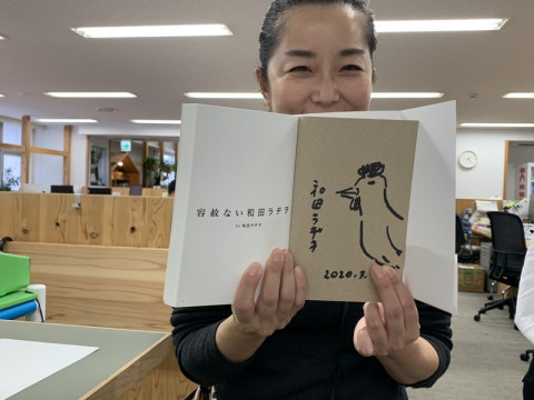 『容赦ない和田ラヂヲ』 先週の土曜日に、和田ラヂヲ先生が400冊の『容赦ない和田ラヂヲ』の 無観客サイン会を開催されました。 そして、ようやくオマケの特製キンチャク袋とともにご注文いただいたみなさまのところにぼつぼつととどきはじめたところです。 弊社の和田ファンの手元にももちろんやってきた。 わーい! 鶏、牛、ラグビーボール、鉄棒。 ああ、あのときのあれ! お買い求めのみなさんももしよかったらイラストの写真をとってTwitterに#容赦ない和田ラヂヲのハッシュタグをつけてツイートしていただけたら! 一緒にイラストをたのしみましょう〜! 2020/03/13 13:40 |