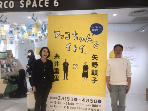さゆみちゃん。 さて、仙台にいる まず、仙台PARCOの 「アッコちゃんとイトイ。」の設営現場には、気仙沼のジャックナイフ、今は一児の母のさゆみちゃんと、 設営は確認に行くといっていますが、おそらく、ホソイとミツイは手をだしたりなどしているでしょう。 イベント会場のには、ほぼ日ストア(現実)も設営されたようです。 手帳はじめ、アースボールやさまざまなグッズも販売予定。 ミツイからは 「店長はさゆみちゃんです」 というメッセージが来たので、私もびっくりしながら、ここにこうしてお知らせです。 おお、さゆみちゃんが! そりゃすてきだ。 みなさん、展示は明日からです。 仙台のご近所の方は、じゃんじゃんいらしてくださいませ! 2020/03/18 18:11 |
