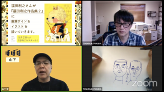サイン+イラスト付きで販売します! イラストレーター・福田利之さんの2冊めの作品集が5月9日に一般発売されます!! パチパチパチパチ!! 前回より1.5倍の、240ページの大ボリューム。 見応えありそうです。 ほぼ日ストアでは、この新刊に直筆サイン+イラストと、描き下ろし特製ステッカーを付けてお届けしますよっ! 本日、福田さんのアトリエにたくさんの作品集が届いたそうです。 す、すごい量です‥‥!! こちら、すべてにサイン+イラストを入れてくださいます。 福田さん、ありがとうございます!! そして、そのようすを、5月2日に配信できることになりました。 写真は、昨日テスト配信をしたようす。 さらっと絵をくださったのですが、見ていてとてもたのしかったです。 ちなみに、真ん中の山下は、左が散髪前、右は散髪後の坊主姿だそうです。 カッパとウサギの生のかけあいもどうぞおたのしみに。 ほぼ日ストアでの『福田利之作品集2』の販売は4月28日(火)午前11時から、サイン+イラスト描きのライブ配信は5月2日(土)午後3時ごろからです。 本日、販売の予告を更新しましたので、くわしくはこちらのページをご覧ください。 そして、「福田利之のホーム&ロック」も5月分の壁紙が届きました。 こちらもぜひ! 2020/04/25 18:11 |