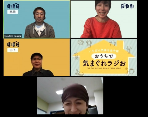 金曜日の夜は斉吉の和枝さんと気まぐれラジお! 金曜日の夜、22時からお届けしている 「おうちで気まぐれラジお」のテスト中です。 画面の一番下にうつっているのは、今週のゲスト斉吉商店の和枝専務です! 気仙沼からご登場いただきます!! ふだんは東京もしくは気仙沼でお目にかかる和枝さんとこのようにやりとりができるのはオンラインだからですね。 いまの斉吉さんのこと、気仙沼のこと、ちょっとだけ話しを聞きはじめると、おもしろくて、あわてて、この話は金曜日に!と止めました。 5月1日(金)、フライデーナイトの10時から、こちらのyoutubeのページで配信します。 和枝さんの話を聞くと、きっと元気になります。 どうぞ、どうぞ、お楽しみにーーーー! 2020/04/28 17:15 |