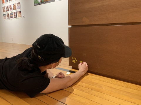 ドコノコの写真展、明日から! こちら、渋谷PARCO8階のほぼ日曜日です。 ここで明日からはじまる6月5日で4周年の ドコノコの写真展、会場の準備がだいぶととのってきました。 いま、壁に足あとを貼っているところです。 展示の主役はドコノコにこれまでに投稿された犬たち猫たちの写真です。 ずらっと並んだなかまたち、それはそれはかわいいです。 いい表情のこが集まっています。 「#ドコノコ4周年」のコーナーにもしうちのコがいた場合は、飼い主さんにパネルをプレゼントする企画もあります。 もしかしたら、あなたのおうちのコも展示されているかもしれません。 お買いものコーナーには作家さんたちがつくる犬猫モチーフの作品や犬猫にまつわる書籍がならびました。 ぜひ会場でチェックしてみてください。 ドコノコユーザーのみなさんはもちろん、ふらりと立ち寄ってもきっとたのしい空間になっていると思います。 会期中は11:30〜19:30のオープンです。 犬も猫も、みんな最高!! 清潔、安全に気をつけて、 みなさんのご来場をお待ちしています。 2020/06/04 18:00 |