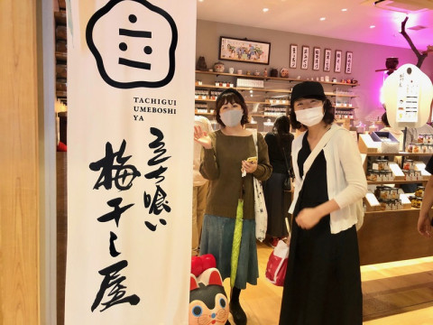 梅干しとお茶 元ほぼ日乗組員 「立ち喰い梅干し屋」ができたみたいだよ、と そのお店はスカイツリーの中、ソラマチの4階にありました。 (3月にオープンして、4−5月はソラマチ自体が休館していたようです) ともかく営業再開してよかった! 梅干しがずらりと並んでいて、見応えがあります。 個人的に、おお! と思ったのは 「つきまさ」さんの新茶が置かれていたこと。 ほぼ日のにほん茶を仕入れてくださってるお茶屋さんです。 (ほぼ日でも6/17水曜から新茶を発売します) 梅干しとお茶、絶対合う。 さて、「立ち喰い梅干し屋」と名付けられているとおり、もちろん食べていけるわけで、 「梅干しとお茶」 「梅茶漬け」などなどのメニューから、 「三粒の梅干しとほうじ茶」を頼みました。 昼食を食べた後でしたが、私はごはんも頼みました。 (どーしても白米が食べたくなります‥‥) 三年漬けた梅とか、焼き梅とか燻製梅とか色々あって、選ぶのもかなり楽しい。 キムチ梅は、ごはんが進む進む。 他の梅干しも食べてみたいのでまた行かなきゃ、と思います。 2020/06/15 17:59 |
