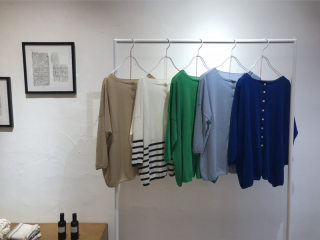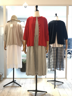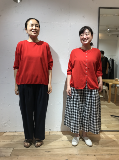 こちらでも! 6月8日(月)にオープンしたばかりの、STAMP AND DIARYを運営する株式会社スタンプスさんのギャラリーに 場所は、中目黒駅から徒歩5分ほどの立地。 店頭には、先週の火曜日から販売がはじまった STAMP AND DIARYの2-way カーディガンが! 大変好評をいただき、ほぼ日ストアでは残すはアカのカーディガンのみ、となりましたが、こちらのギャラリーでは、ほぼ日ストアで完売してしまった色や取り扱いのなかったボーダー柄などもご試着&ご購入いただけます。 ほかのアイテムもどれも素敵なものばかりで、ついついお買い物モードに‥‥。 気になる方はぜひご覧になってくださいね。 (大変恐れ入りますが、在庫状況などは店舗に直接お問い合わせくださいませ。) ●gallery_stamps 東京都目黒区上目黒 1-15-13 1F ●ギャラリーのオープン予定は、 インスタグラムでご確認ください。 ちょうどこの日、アカの2-way カーディガンを着てくださっていたスタッフさん(右)。 「下にギンガムチェックのパンツを合わせてみました」。 ボリュームがあるパンツで、一見スカートを履いているかのようですが、このパンツ、とっても涼しいそう! 「涼しくて軽いアイテムをもってくることで、夏らしいコーディネートになると思います」。 白い靴と合わせると、さらに爽やかな印象になりますね。 スタッフの岩佐さん(左)は、後ろボタンで着てパンツと合わせたコーディネートに。 同じカーディガンなのに、着方を変えるだけでずいぶん印象が変わります。 ワンピースにも、もちろんぴったり。 ボタンを開けたり、閉めたり、肩にサッとかけてみたり。 いろいろな着方がたのしめて、差し色にも、冷房対策にもなるとあって、これからの時期にとても重宝しそうです。 また、ほぼ日ストアでは、この続編ともいえる 「秋の入りぐち」のイメージのラインナップを、同じ素材で8月にお届け予定です。 そちらもどうぞおたのしみに! 2020/06/23 18:20 |