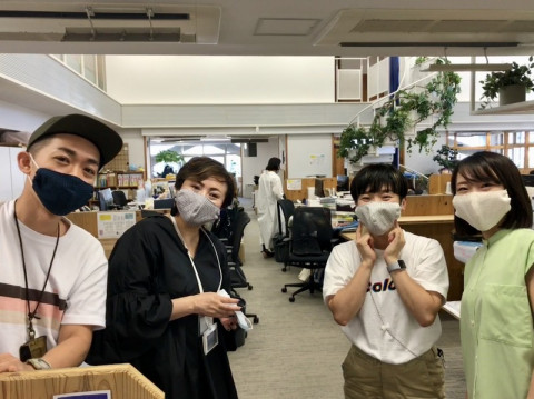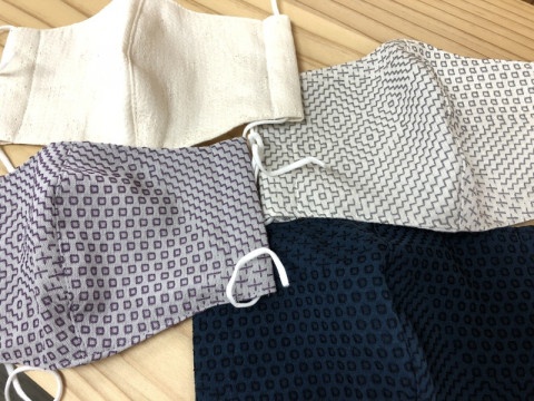 刺子織のマスク 手帳2015の刺子織カバー製作でお世話になった福島の職人、大峡さんから大きな紙袋が届きました。 中身は、なんと刺子織(さしこおり)のマスクで、100枚近くもありました。 「みなさんでどうぞ、少し厚手なので涼しいときに使ってくださいね」とのこと。 わー、もう、嬉しいです! みんなに配る前にまず自席で中身を確認していたら、 「何それー」と何人かがやってきたので、好きな柄を選んで着けてもらいました。 刺子織の風合いが素敵です。 それぞれによく似合ってる! 福島に取材に行かせていただいたのはもうずいぶん前のことですが、 目の前で刺子織の機械を見せてもらって、かなり感動しました。 「紋紙」という型紙に無数の穴があいていて、その穴がプログラムの役目を果たしていて、ガチャンガチャンと織られできあがっていく布の美しさ‥‥。 今思い出しても、あれはすごい作業でした。 福島、食べ物も美味しかったなあ。 ‥‥あれ、なんか、それだけじゃなかった気が。 あ、そうだ。その帰り道、会社から予めもらっていた帰りの新幹線の切符をなくしてしまって、自腹で買い直し、さらに、みんなが待っているホームまで猛ダッシュしたんだった‥‥そんな情けない記憶まで同時によみがえってきました。 それはさておき、刺子織のマスク、とても嬉しいです! 大峡さん、ありがとうございました。 2020/07/03 19:02 |