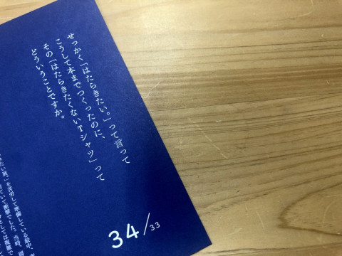 できあがってきてます! 33のなやみに、33人の著名人がこたえてくれた 「はたらきたい展。2」の 「公式図録」が、今まさにできあがりつつあります。 しずかに、ぜっさん、校了中です。 版元は京都にあるアート系出版社、青幻舎さん。 普段から素敵なデザインの本ばかりをつくっている出版社さんなので、今回も、佐々木マキさんのイラストを活かしたかわいいサイズの、持っていて嬉しい装丁の本になります! 肝心の内容は現在「ほぼ日」連載中の 「33の悩み、33のこたえ」 の完全収録に加え、図録だけのボーナストラックとして ・和田ラヂヲ先生による 9本の「はたらく4コマ」漫画 ・34番めの「なやみとこたえ」 (こたえてくれた人→加賀美健さん) などが掲載される予定です。 ポストカードくらいの小ぶりな本に 「33のなやみとこたえ」 が、ギュギューッとつまっています。 8月中旬くらいから一般の書店にも流通するんですけど、今「ほぼ日」で予約できる数量限定版は、すてきなスリーブケース入りで、かつ「小口塗り」を施した特別仕様。 通常版と比べて値段は一緒ですので、 (配送手数料は別途かかります) この機会に限定版をお求め頂けたら嬉しいです! ご予約は、こちらのページからどうぞ。 あー、できあがるのが、たのしみだ。 2020/07/13 17:29 |
