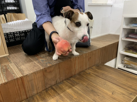 桃。 桃をさっき 「川中島白桃は21日からです〜!」と。 一瞬、私は22日とかに天に召されるのかとおもったんだけど、それは考え違い。 そんなことをしていたら、今晩どうしても おいしい桃がたべたくなったので、TOBICHIにでかけてきました。 桃を袋にいれてもらっている間に、TOBICHI2の 「TOBICHIのひびのこづえ工場」にも行って、毎年一つづつふやしているどうぶつポーチを買いました。 赤べこ、赤べこ、ぶた、と、買っています。 戻ってみたら、なんとお店の中に、ブイコさんと、ブイコさんのおかあさんが桃を買いに来ておられました。 わあわあ、かわいこちゃん! おひさしぶり! せっかくだから、ブイコさんと桃のペアでも写真を撮らせてもらいました。 2020/07/31 18:47 |