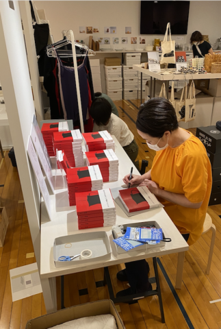 たのしくなってきた! こちらは、渋谷PARCO8階「ほぼ日曜日」です。 weeksdaysチーム、 着々と展示ができています。 ずいぶん前から相談していた計画がようやくお披露目です! 少しずつ、できていくたび、 「わーきれいー」 「すてきー」「かわいいー」 よろこんでくれるおふたりです。 いつも、現場にいる身としては、新鮮な反応で、うれしいです。 おふたりが喜んでくれた展覧会 「まさこ百景」は、そろそろ完成です! すてきな物がたくさんあつまっています。 まさこさんもサイン本にサイン中。 こちらは、会場で買うことが出来ます。 たくさんの方に見ていただけたらいいなー。 2020/08/05 01:08 |