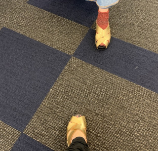 あ! その足元は、 「weeksdays」で買った、 金のサンダル。 ウエッジヒールで、こんな高さになれてない我々が、足首ぐねりの恐怖と戦ってでも履くのは、おしゃれに見える金色のやつだから。 ところで。 なんか、金色の靴で履いたら最後、息絶えるまで踊り続けさせられる、みたいな恐怖のおとぎ話ってなかったっけ? いつも思うんだけど、これはただの妄想なのかな。 いや、なんの小話をはさんでおるのじゃ? あきのけはい。 今年はシケた夏だったので、さっさと夏はおわって、天高く馬肥ゆる秋を待っているぜ。 栗をゆでてたべたいぜ。 2020/08/31 16:30 |