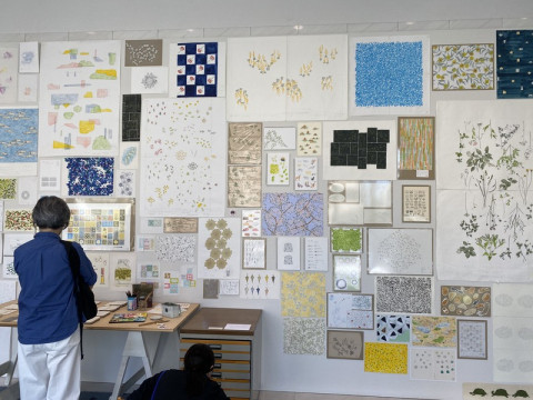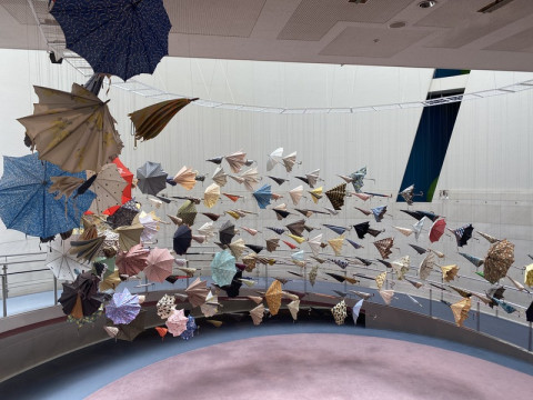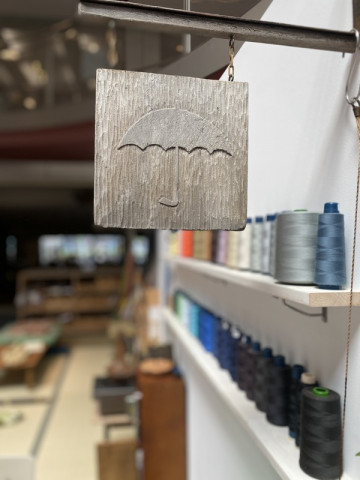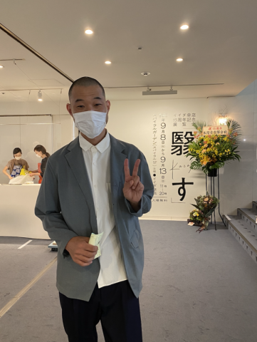 たくさんの傘。 お天気もよかったので、ハラマキ、手帳、TOBICHIや、たのしみ展でお世話になったイイダ傘さんの個展に、少し前にイイダ傘さんでオーダーしたお気に入りのひまわりの日傘を持って、でかけてきました。 飯田さんのお人柄がにじみ出た優しいドローイングや、工房を再現したコーナー、過去のアーカイブ生地から好きな傘が注文出来るオーダー会、オリジナルグッズが買えるコーナー、カフェでは、イイダさん監修のメニューもあり、盛りだくさんな内容です。 なかでも、空を舞う傘の大群が圧巻でした。 傘の群れの中には、私の傘と同じ子も仲間に入っていましたー。 うれしい。 なんと! こんなに丁寧に作られたステキな展示なのに、次の週末には終わってしまうのです。 6日間だけの開催なので、ぜひ、早めにお出かけください。 飯田さんも会場にいらっしゃいましたよー。 イイダ傘店 15周年記念 展覧会「翳す」 今日から13日日曜日まで。 スパイラルガーデンさんで開催中です! 2020/09/08 15:15 |