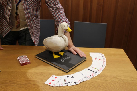 研究生募集中 「これってNO MORE映画泥棒みたいじゃないですか?」 白手袋の トランプを汚さないという意図だったのですが、言われてみれば確かに…… ただいま、ほぼ日の学校「前田知洋さんのクラシックマジック研究室」 研究生募集中です。 第1期と第2期の研究室は小さめの部屋で行いましたが、第3期は換気のできる広い部屋で開催します。 「私の新しき生活様式」で前田さんが紹介してくださった手作りの「アヒルちゃん」にも会えますよ。 ご参加は抽選になってしまいますが、さらなるご応募お待ちしています! 締め切りは9月28日午前11時です。 2020/09/23 13:51 |