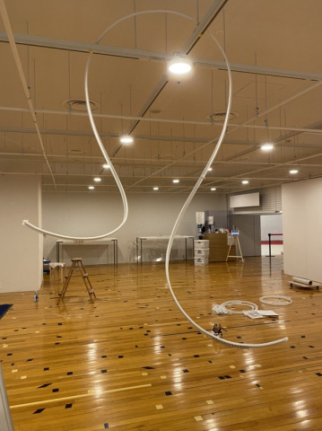干物。 昨晩、渋谷PARCO担当、任侠・ あの白蛇のびよんびよんは、吊り下げられて干し物になっていました。 どの部分のなにかがほんとにさっぱりわからんのよ。 今日は10時30分ごろから本格的な設営にはいるというから、立ち寄ってから出社するわ‥‥。 って、朝からきのうの続きですみません。 会期は、明日からとおもいきや、明後日からだった! PARCOの「大和田ラヂヲ展」 TOBICHIの「小和田ラヂヲ展」 (10月1日〜10月18日) 2020/09/29 09:40 |