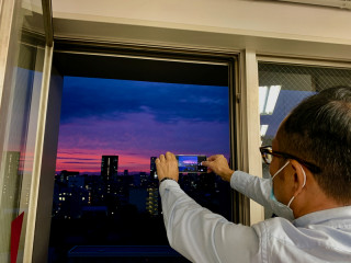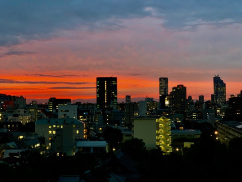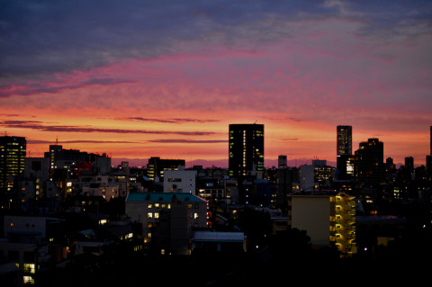 夕日がきれいだったんです さきほど、私の席の窓から見える夕日がとてもきれいだったんです。 でも空を撮るのってなかなかむずかしいですよね。 いつも眺めるだけで終えてしまうのですが、あんまりいい色だったので、ふたつのカメラを持ってチャレンジしてみました。 すると後ろから 「スタ! スタ! スタ!」 とはっきりした足音をたてて近づいてくる人がいて、それは 何しに来たんですか。 「スガノさんと同じですよ、夕日がきれいだから、写真に撮ろうと思って」 そんなら小河原さん越しの夕日も撮ろう、と思い、撮ってみたら、なんだか小河原さんが入った写真がいちばんいい色に撮れたみたいで悔しかったです。 ちなみに、1枚め2枚めはiPhone、3枚目はニコンDfで撮りました。 ついていたレンズは、遠くを撮るにはあんまり適さないのかな、AF-S NIKKOR50mm f1.8でした。 2020/09/29 18:23 |
