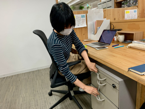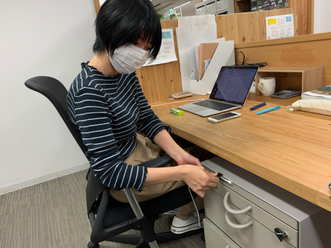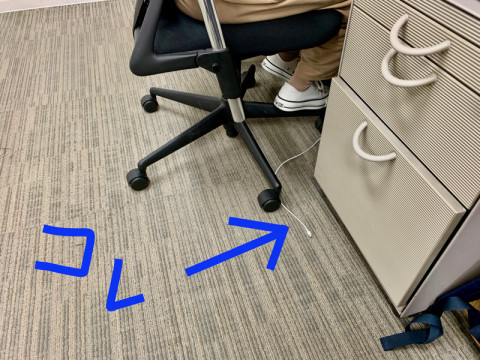 8ヶ月目にして 隣の席の 「カチャ‥‥カチャ‥‥」 となにやら音を立てています。 何をやっているのか訊いてみたところ、iPhoneの接続ケーブルを机の引き出しに固定させようとしているのです、と。 「ダブルクリップで引き出しの溝にとめるのは、できませんでした」 そりゃどう見ても溝が浅すぎるもんね。 引き出しの取っ手にはわせて鍵にひっかけるのはどう? 「ナイスアイデアですが、それでは引き出しが開きませんし、鍵も意味をなさなくなります」 うーーーん。 入社してこれまで、どうしてたの? 「この状況です」(4枚目の写真) それはいただけないね。 「そうなんです。入社8ヶ月にして、この改革」 私のように、短いケーブルにしてパソコンにつないだらどうですか? (5枚目の写真) 「そっ‥‥それは、でででんきやさんで、売っているのですか?」 売っていますが、約1ヶ月後に引っ越しなので、次の改革はすぐにやってくると思います。 引っ越したら、おもしろいいわもっちゃんと離れちゃうのがさみしいです。 2020/10/05 20:59 |