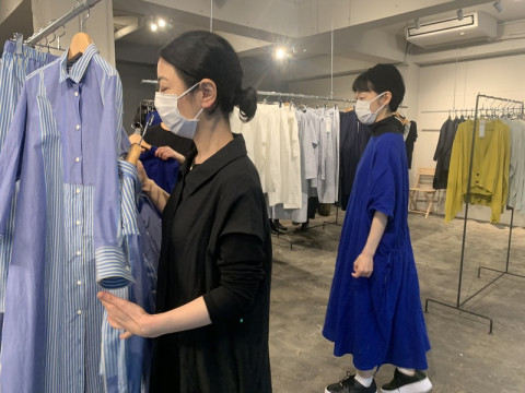 「たのしみ展」と。 10月28日午前11時から、こんどは「受注販売」で、 「nooyのシャッポウギ」を再販します。 お届けは、1月中旬くらいになってしまうのですが、上限はあるにせよ、前回よりは多くの枚数が作れる布地を仮押さえをして、みなさまのご注文を待ち受けております。 そんな準備期間中に、事務所からチャリで5分くらいのところで、nooyさんが来年の春夏のコレクションの展示会をされていたので、いってきたのでした。 お二人に直接お会いしたいし、相談事もちょっとあるし! 会場内をウロウロとしていたら、遠くから声をかけられました。 振り向いてみると‥‥。 はて? 「去年の4月の『生活のたのしみ展』で、nooyさんのブースでバイトしてたモロイですよ!」 ああああ! 私がめちゃめちゃ頼りにしていたモロイさん! 「バイトの終わりで、声をかけていただいたり、別の機会にご連絡して仕事を手伝わせてもらっていました。」 へー! そういうふうに仕事がつながっていくのはとてもうれしいですー。 折しも、「DELIな生活のたのしみ展」を開催している最中での再開だったので、nooyのお二人とも、今回は、家でゴロゴロしながら、 「たのしみ展」で最高だ、というような話をして帰ってきました。 2020/10/26 12:05 |
