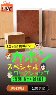 のスペシャルコンテンツとして、このあと18時よりドラマーの沼澤尚さんにカホンの叩き方を教わります!