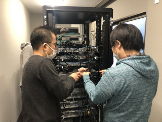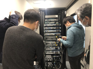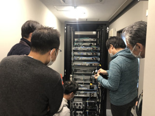いま、神田オフィスでサーバに電源を繋いでいます。