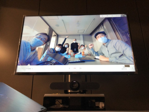 という事で、新設のテレビ会議システムから勝利のポーズを。