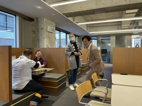 新社屋バージョン。 それは一昨日のことじゃった。 ↑はじめての「一昨日」。 旧社屋のひっこしの日にも事務所にきてくれた、東工大の教授の柳瀬博一さん。 「引っ越したら遊びに行きます。」 の、約束のとおりに、新社屋に来てくれたのでした。 遊びに来たのではなく、本当はなにかの用事があったのではないかと推察しているのですが、これまたわーわー言ってたら、本当の理由を聞き忘れました。 ちなみに、その日は「博一」ではなく、 「博四」が神田にあらわれていたようです (おそらく)。 あ、そうそう、 「錦三」、それが我社の町会。 近所のお蕎麦屋さんのご主人が、町内会長という噂が社内を駆け巡った昨日。 町内づきあいから遠く隔たった日々をしばらくおくっていたので、あらためて新鮮。 回覧板はまわらんのですか? わくわく。 2020/11/19 16:37 |