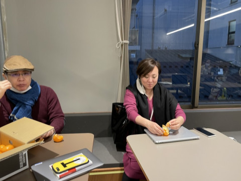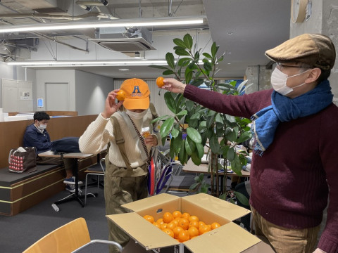 みかん、きたる。 「受付にとどいているかなあ」」ということで下に降りていき、しばらくしたら、お父さん、これもってって! というようなことを言われた、といって、みかんをもってきました。 いや、待て待て待て。 受付のみなさんが 「お父さん、もってって」みたいなことは言いませんよ。 宛名宛名。 といって、宛名を確認してみたら、 刺繍作家のyacmiiさんからのお引越し祝が、 yacmiiさん、ありがとうございます。 みんなでおいしくいただきます。 おや、 2020/12/02 14:45 |