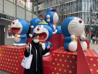 先行販売中。 それは、一昨日のことじゃった。 スマン、一昨日のことを。 ほぼ日のしごとはじめは昨日のことじゃったので、一昨日は、ラストデイオブ正月休み。 前々からの約束の用事があって、渋谷で 渋谷にいるのだから、パルコにいかねば! おみせにたってるみんなに年始の挨拶じゃんということで、たちよってきたのです。 なにがいいたいかというと、明日からほぼ日ストアで発売の 「松林図?風ハラマキ」が、パルコの4Fのカルちゃんだと、すぐに手に入る、ということですぜ。 正面玄関には、ドラえもんがたくさんいます。 アホのダブルピースで写真をとってもらいました。 いい記念になりました。 2021/01/07 11:34 |