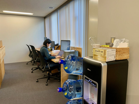 ひろびろと、でもふたりともマスクして、コツコツ仕事をしています。