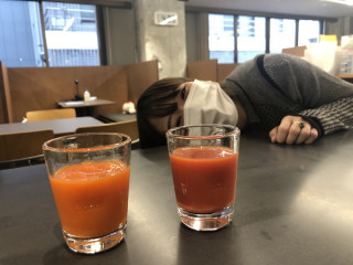 どっちのにんじん派? 昨日の製作中でお知らせしましたとおり、本日より「畑deしぼり」発売してます。 ラインナップは、にんじん2種類と青汁の、計3種類。 フレッシュでおいしい、ほんと〜〜に自信作です。 社内の何人かから、 「で、にんじんは、どっちがおすすめ?」 と聞かれました。 最初は飲み比べを楽しんでほしいので、ぜんぶ試せる「アソートセット」がおすすめなのですが、そうですね、あえていうなら‥‥ そうだ、 「畑」プロジェクトに関わったメンバー6人で、 「あえていうならどっちか」 を話してみることにしました。 いち意見としてご参考になさってくださいねー。 「京くれない」(真っ赤なほう)派 「にんじんの味と、メロンのような、トマトのような味が時間差で味わえる、他にはない味です」 「にんじんなのに、こんなにあまくて、にんじんぽくない味なのがすごいと思います」 「ひとみ五寸」(オレンジ色のほう)派 「朝飲むならすっきりとしたひとみ五寸かな。 にんじんらしくて好きです」 「すっきりしていて、飽きがこない感じ。 やわらかくて収穫時に割れやすい、というのを取材で畑に入った際に実感して、繊細なにんじんを丁寧に育ててくださった、という感じがしてますます好きになりました」 これ、「平等にしなきゃ」と思ったわけでなく、ふつうに聞いて、みごとに真っ二つに別れました。 いま、これを書いてる真っ最中に、通りがかった 「えー、あのジュース飲んでみたい〜」 というので、試してもらいました。 (ついでに写真も撮らせてもらう) 「私、こういう系のジュース、過去にありとあらゆるものを飲んできたんです」 それは頼もしい。どう? 「おいしい! なんか、オレンジのほうが氷っぽい感じ? シャリシャリする」 あ、それは、超適当な私が、流水で溶かす時間を短くしてしまったからです。 「私はこっちのほうがちょっと柿っぽい味がして、好き」 ということで、ひなが選んだのは 「ひとみ五寸」(オレンジ色のほう)でした。 ご参考までにー! 2021/01/27 17:33 |