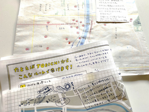 地図ができた! さきほどモギがちらっと話題にしてくれてましたが、来週からはじまる、 「ほぼ日手帳2021 spring」のTOBICHIでのイベントで配るための地図が、昨日ようやっと完成しました。 (画像は社内で確認用にプリントしたものなので粗かったり、端が切れていたりしますが‥‥) 東京と京都のTOBICHIのまわりのおさんぽmapで、 「TOBICHIの帰りにどこ行こうかな‥‥」と思ったときの参考になるものです。 TOBICHI京都のみんなにもたくさん力を貸してもらって、京都版もバッチリ愛のこもった内容になりました。 ただ作るときに、 「やっぱりhandwriteがいいよね〜」 ということで、東京ver.も京都ver.もA3オモテウラ全面手書きにしてみたら、なかなかのボリュームで、途中かなり焦りました。 が‥‥できた! しかもちょっとカワイイ。 TOBICHIにお越しの際にはよければ手にとってみてくださいませ〜。 (多めに作ったので、地図はイベント終了後もTOBICHIでお配りする予定です。 こんな時期なので、どうぞタイミングを見計らってお越しくださいね) 2021/01/29 14:20 |