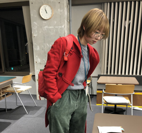 さんから私物のお下がりのコートをいただいたらしく、赤いリュックと赤いコートで赤ずきんちゃんのようになりました。